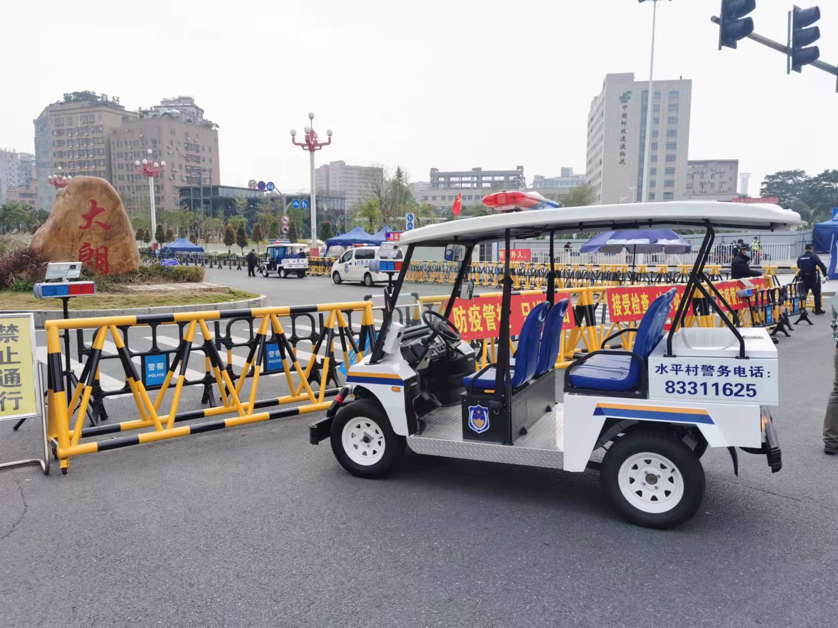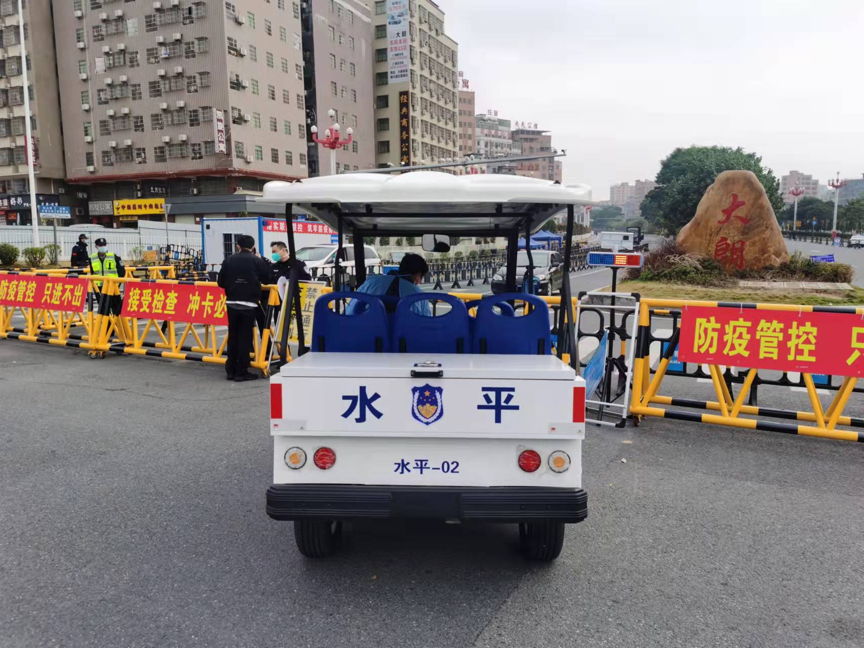 分類:公司新聞 發布時間:2021-12-29 09:59 隨著東莞大朗抗疫工作的開展,疫情也等到了很好的控制。 為了更好地支援大朗的抗疫工作,卓越電動車也一直在積極行動。 日前,卓越電動車加班加點生產的電動巡邏車已經陸續投入使用,正式奔赴大朗的抗疫一線。 大朗蔡邊是重點封控地區,也是最早投入使用電動巡邏車的村。 大朗其他封控地區的巡邏車也在陸續投入使用